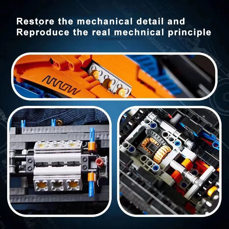 Experience the thrill of Formula 1 with our remote-controlled racing car in vibrant blue and orange with stylish black details. Build your own Formula 1 car with this exciting model kit. Perfect for speed and construction enthusiasts. Get ready for the track excitement!